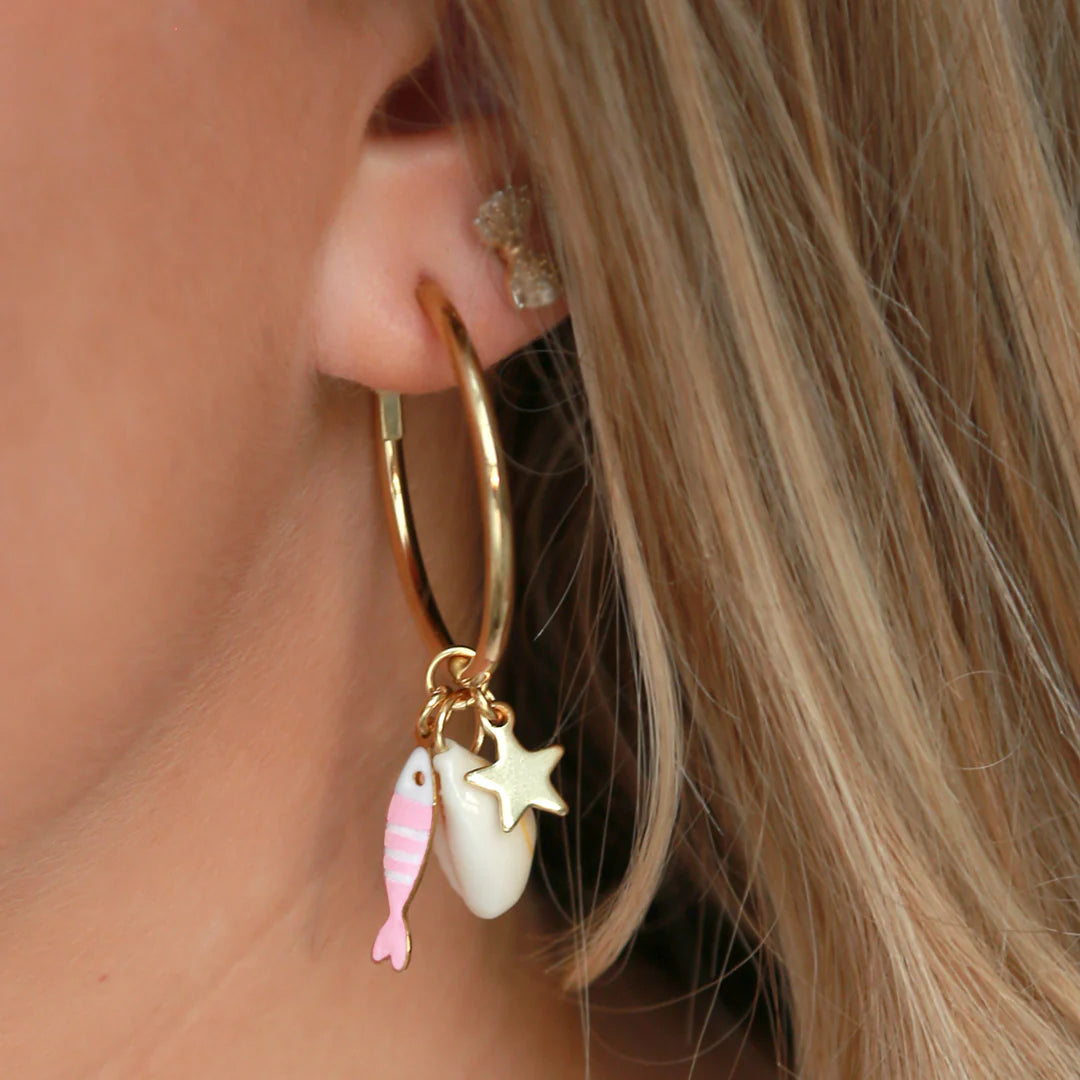 > Leuke gouden smalle hoops met verschillende bedeltjes